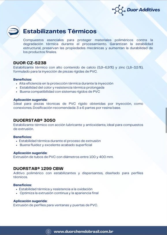 Estabilizantes térmicos - DUOR CZ-523B, DUORSTAB 3050 e DUORSTAB 1299 CBW