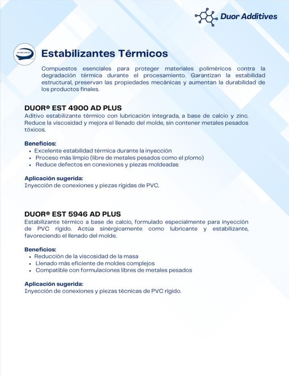 Estabilizantes térmicos - DUOR EST 4900 AD PLUS e DUOR EST 5946 AD PLUS