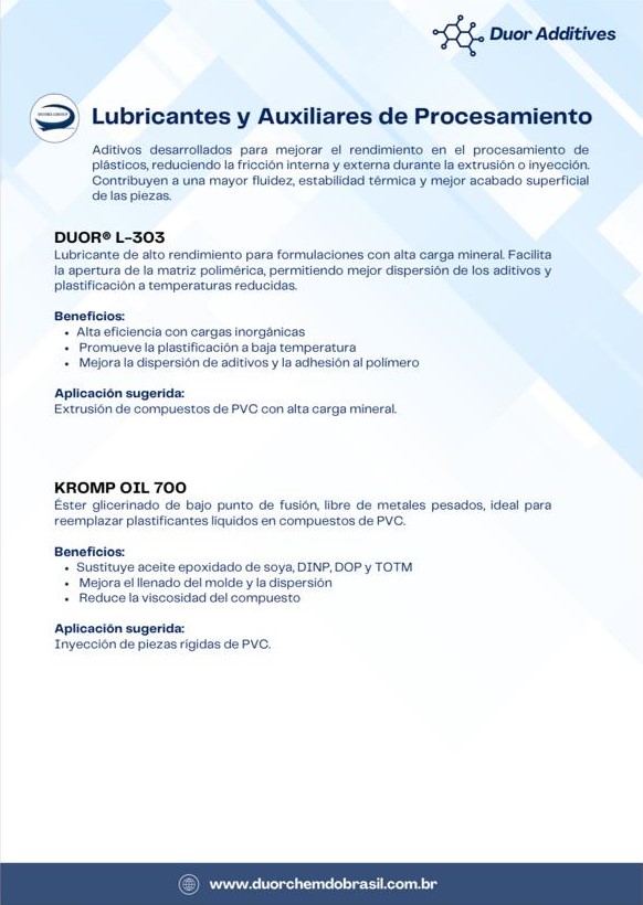 Lubrificantes e Auxiliares de Processamento - DUOR L-303 e KROMP OIL 700